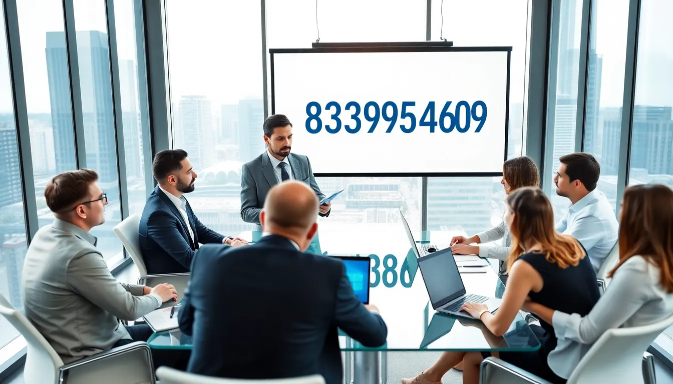 digital interface showcasing the number 8339524609 in a modern office.